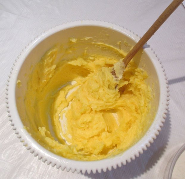 Mix butter & sugar: In a bowl, combine the butter and sugar using a wooden spoon until smooth.